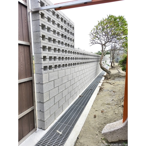 - 空心磚圍牆工程兼具結構穩定與實用美觀,是住宅、工廠、校園及各式建築常見的圍界選擇。採用高品質空心磚材料,具備良好耐壓性與抗風雨能力,有效提升圍牆整體強度與使用年限。施工過程講究基礎放樣、砌築精度與結構銜接,確保牆面平整筆直、線條俐落。空心磚本身具有隔熱、隔音特性,可降低外界干擾,兼顧隱私與安全需求。可依現場條件搭配抹面、塗裝或造型設計,滿足不同風格與機能需求,打造實用耐久、外觀整齊的高品質圍牆工程。
