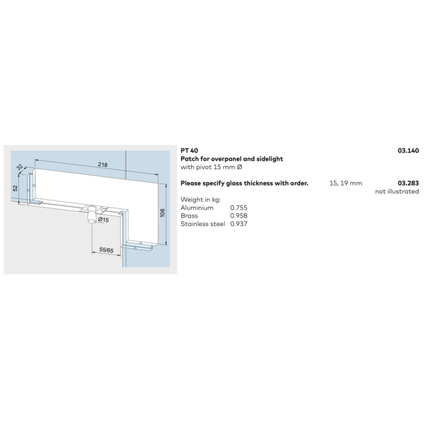 DORMAKABA PT-40 L型玻璃門用夾具/包角 Patch for overpanel and sidelight產品說明