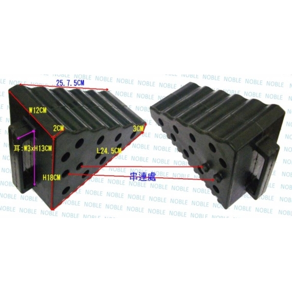 - 車輪擋塊通常成對使用,依坡度方向置於車輪下方,由堅固材質製成,底部具防滑設計,可強化停車安全,適用重型車輛或斜坡環境。