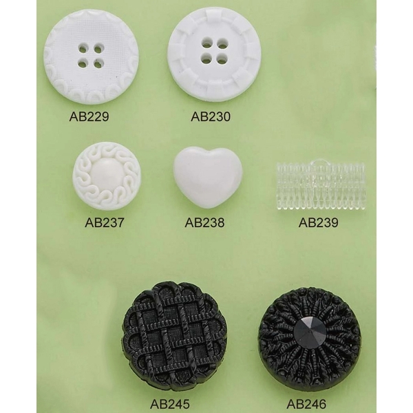 波麗鈕釦、塑膠電鍍扣、真貝鈕釦、椰子鈕釦、木釦、牛仔立釦、金屬鈕釦、四合扣、雞眼、水鑽扣、壓克力鈕釦及其它服飾配件