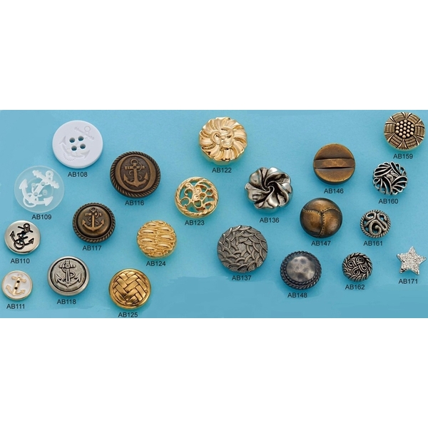 波麗鈕釦、塑膠電鍍扣、真貝鈕釦、椰子鈕釦、木釦、牛仔立釦、金屬鈕釦、四合扣、雞眼、水鑽扣、壓克力鈕釦及其它服飾配件