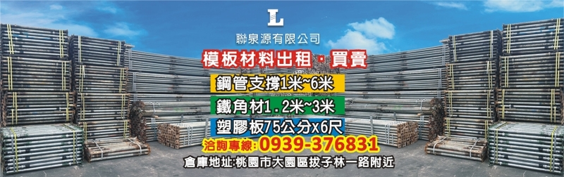 聯泉源有限公司 - 模板材料出租,模板材料買賣,鋼管支撐,鐵角材產品介紹