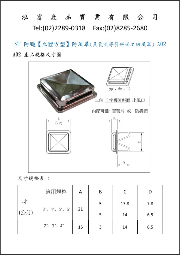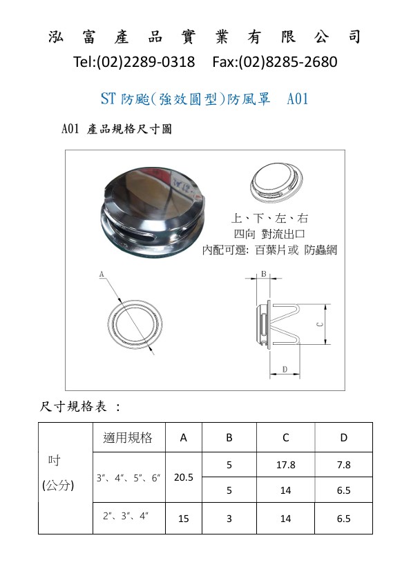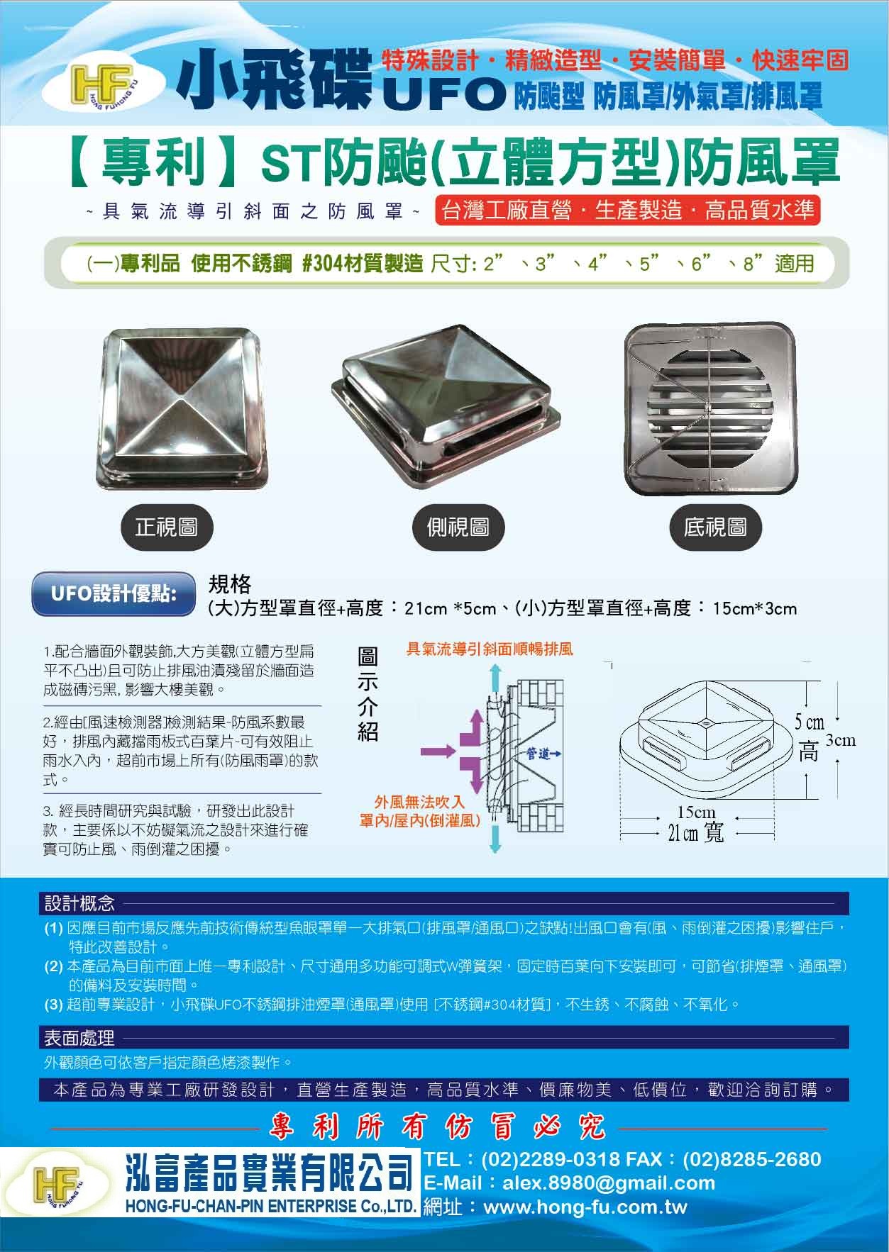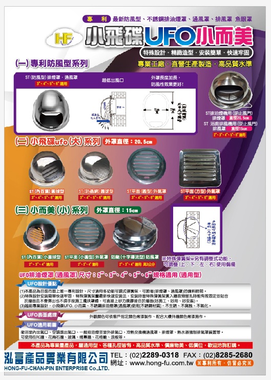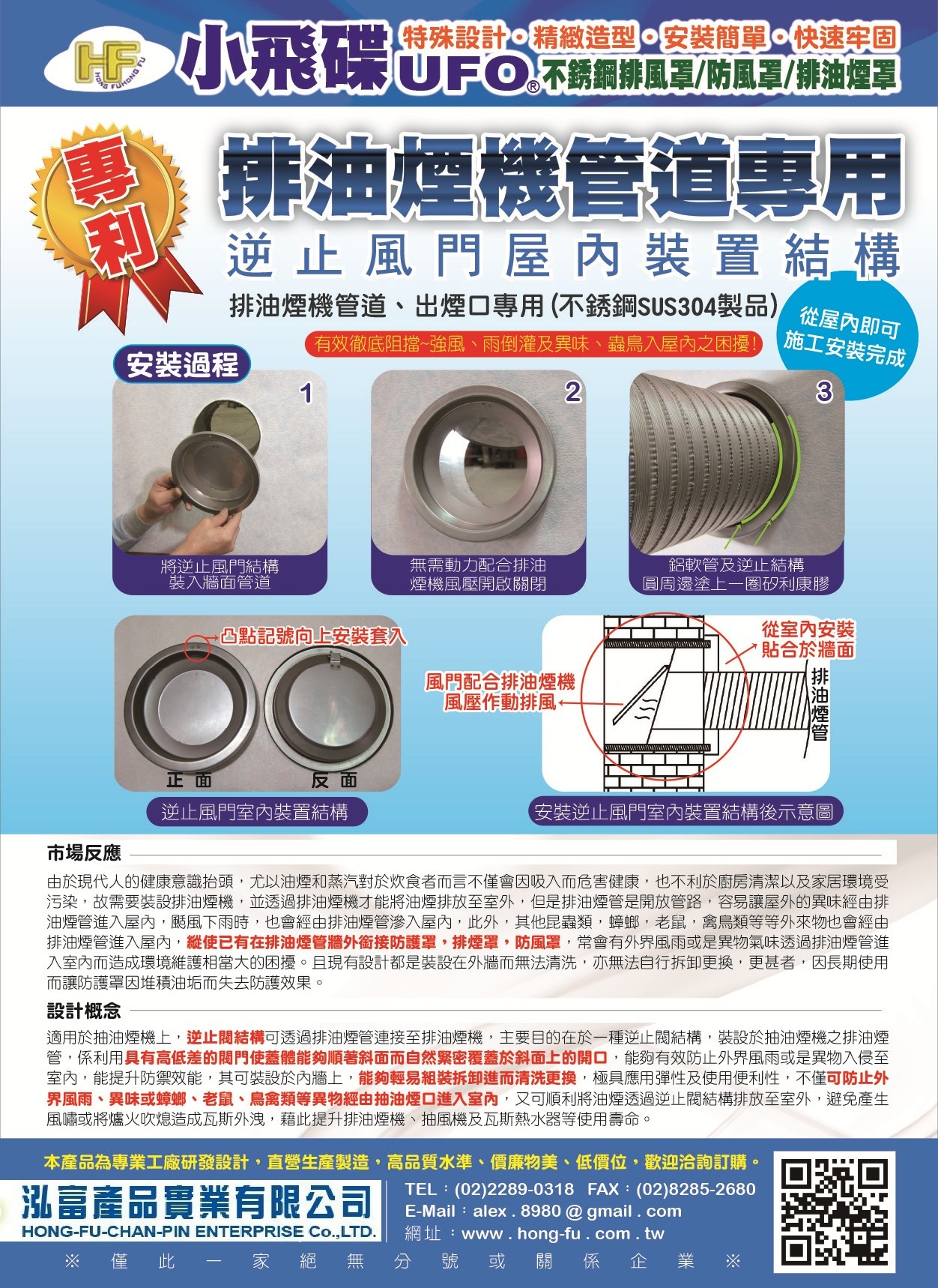 排氣罩、防風罩、排煙罩、方形外氣口、出風口、溢水口、防颱型、立方體、平面、衛浴通氣口、圓形、筒狀、魚眼罩、方形、排煙罩、外氣罩、排風罩、內牆溢水口、外牆溢水口、外牆排風罩、通風罩、不鏽鋼管邊修飾蓋、方形排風罩、 廁所排氣罩、通風口、扁平風罩、專利不銹鋼防風型排氣罩、四角形、逆止風門防風罩、防颱立體方型防風罩、熱水器強制排氣罩、防颱抗風雨型導流盤防風罩、鋁箔軟管、防颱強效圓型防風罩、鋁自由軟管、防颱導流盤防風罩、抗風雨型導流盤防風罩、收邊修飾套環、不銹鋼管邊修飾蓋、防颱3向圓型防風罩、抗風雨型防風罩、屋內逆止風門裝置結構、ST防颱型排煙罩、逆止風門排煙罩、流暢網式防風罩、衛浴室內出口罩、方形圓型衛浴室內出口罩、新北溢水口、新北外氣口、扁平筒型、衛浴室內出口罩、外牆排氣罩、不鏽鋼排油煙罩、橢圓型防風罩、不銹鋼平面方形外氣口、不銹鋼平面圓形外氣口、防風雨式排煙罩、逆止閥、不鏽鋼排煙罩、圓型逆止風門、牆面溢水口、溢水口修飾蓋、大樓管道間渦輪自然通風器、鋁自由管、鋁箔軟管、伸縮軟管、鋁軟管、不保溫軟管、水電五金器材、廚具爐具器材、衛浴設備器材、大樓對外排氣口、排油煙機鋁管、專業台灣製造大樓對外排風口產品、排氣罩裝置