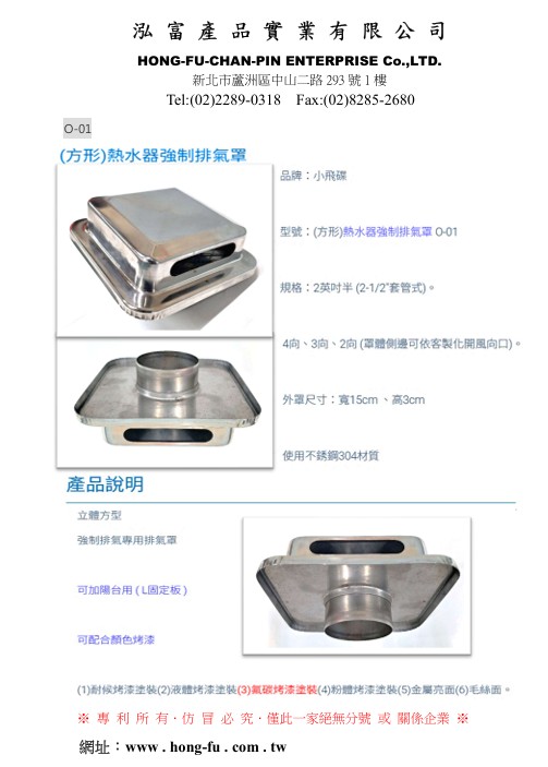排氣罩、防風罩、排煙罩、方形外氣口、出風口、溢水口、防颱型、立方體、平面、衛浴通氣口、圓形、筒狀、魚眼罩、方形、排煙罩、外氣罩、排風罩、內牆溢水口、外牆溢水口、外牆排風罩、通風罩、不鏽鋼管邊修飾蓋、方形排風罩、 廁所排氣罩、通風口、扁平風罩、專利不銹鋼防風型排氣罩、四角形、逆止風門防風罩、防颱立體方型防風罩、熱水器強制排氣罩、防颱抗風雨型導流盤防風罩、鋁箔軟管、防颱強效圓型防風罩、鋁自由軟管、防颱導流盤防風罩、抗風雨型導流盤防風罩、收邊修飾套環、不銹鋼管邊修飾蓋、防颱3向圓型防風罩、抗風雨型防風罩、屋內逆止風門裝置結構、ST防颱型排煙罩、逆止風門排煙罩、流暢網式防風罩、衛浴室內出口罩、方形圓型衛浴室內出口罩、新北溢水口、新北外氣口、扁平筒型、衛浴室內出口罩、外牆排氣罩、不鏽鋼排油煙罩、橢圓型防風罩、不銹鋼平面方形外氣口、不銹鋼平面圓形外氣口、防風雨式排煙罩、逆止閥、不鏽鋼排煙罩、圓型逆止風門、牆面溢水口、溢水口修飾蓋、大樓管道間渦輪自然通風器、鋁自由管、鋁箔軟管、伸縮軟管、鋁軟管、不保溫軟管、水電五金器材、廚具爐具器材、衛浴設備器材、大樓對外排氣口、排油煙機鋁管、專業台灣製造大樓對外排風口產品、排氣罩裝置