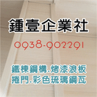 鍾壹企業社專營彩色琉璃鋼瓦、鐵棟、鋼構、烤漆浪板、捲門、防火屋頂板、鍍鋅C型鋼、磁鋼板