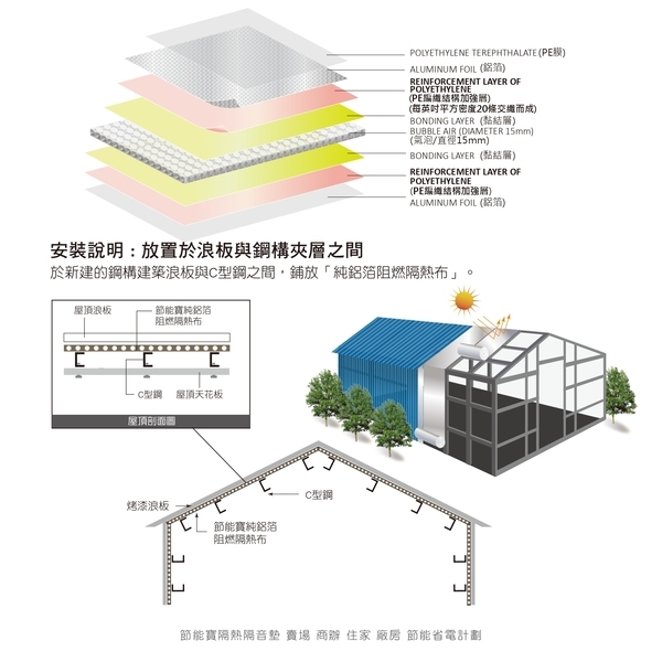 節能寶隔音隔熱墊源自於新時代生活空間、作業環境節能隔音隔熱的需求,無論生活居家、工作環境、商業空間、 工業廠房,溫度與噪音的控制都是高品質、高效能與環境 永續的基本需求。 追求節能減噪宜居的生活空間,是普 世價值、是社會責任、也是我們持續努力的目標。