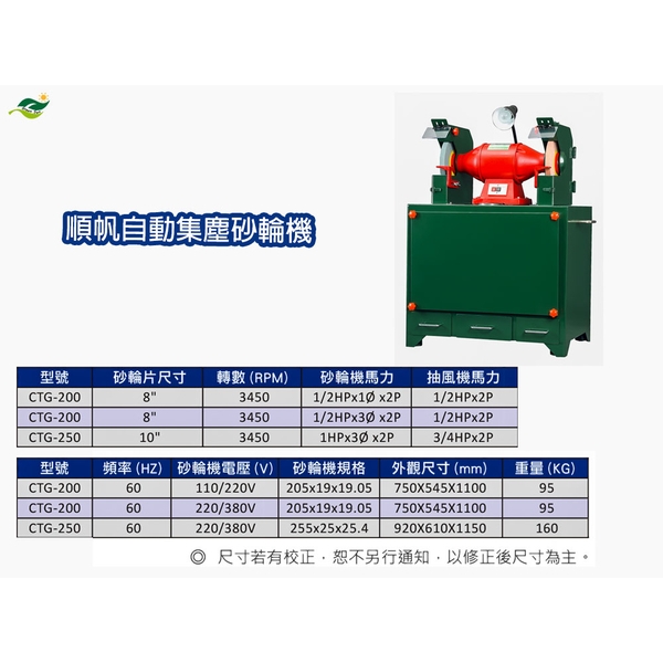 順帆自動集塵砂輪機CTG-200~250,8"~10",低噪音,耐用,平穩,低故障率型號 : CTG-200~250