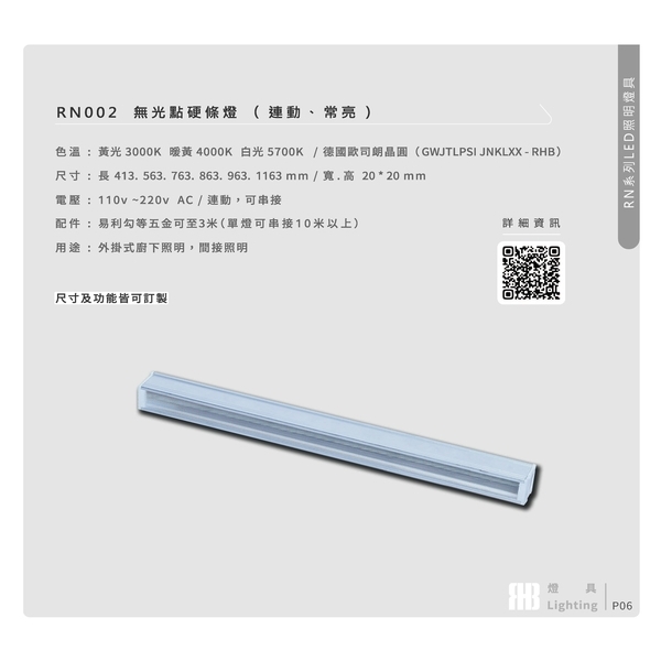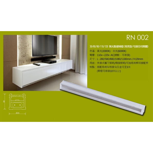 RN002, 無光點硬條燈, LED 串接, 常亮條燈, 廚下照明, 間接照明, 客製化條燈, 外接式照明, 櫥櫃燈,110V 220V 燈條, 長度訂製, 易利勾, 高壓條燈型號 : RN002