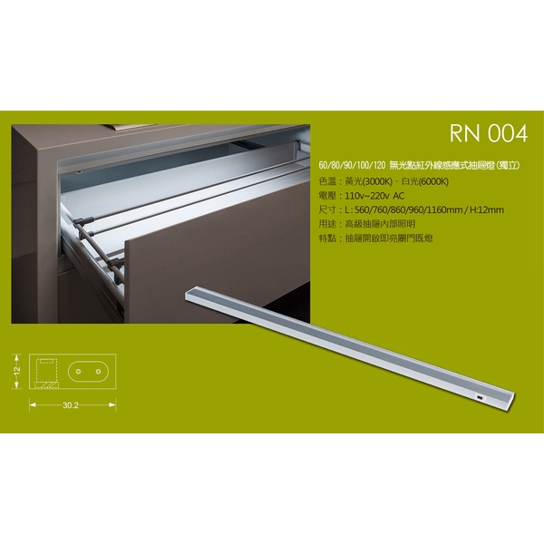 RN004, 感應式, 無光點, 抽屜燈, 硬燈, 德國歐司朗, 自動亮滅,公司 : 博麗貿易有限公司