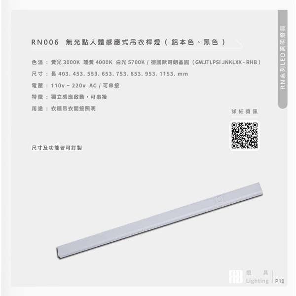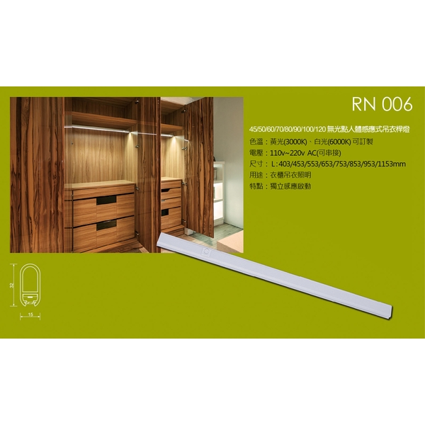 RN006, 吊衣桿燈、衣櫃燈、感應式衣櫃燈、間接照明, 無光點照明、人體感應、獨立感應啟動、全電壓、可串接、德國OSRAM晶片、三色溫, 衣櫃間接照明、衣帽間照明、更衣室燈具、吊衣間公司 : 博麗貿易有限公司